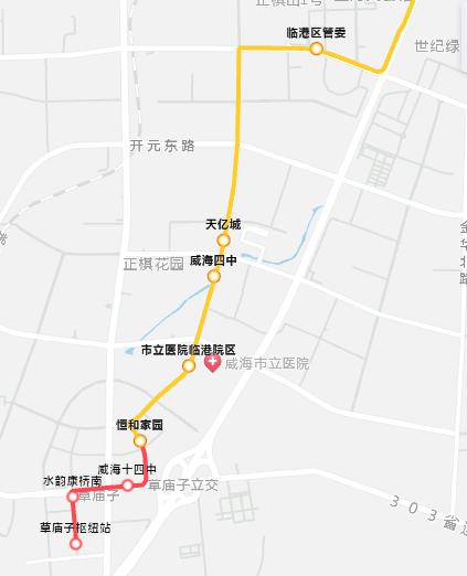 站點(diǎn)設(shè)置:長峰(中諾口腔)、世紀(jì)大廈、韓樂坊北、韓樂坊、蒿泊(德韓口腔)、豐禾商業(yè)廣場、公交經(jīng)區(qū)分公司(魯東駕培公司)、仁愛中醫(yī)院、江家寨、臨港區(qū)管委、天億城、威海四中、市立醫(yī)院臨港院區(qū)、恒和家園、威海十四中、水韻康橋南、草廟子樞紐站